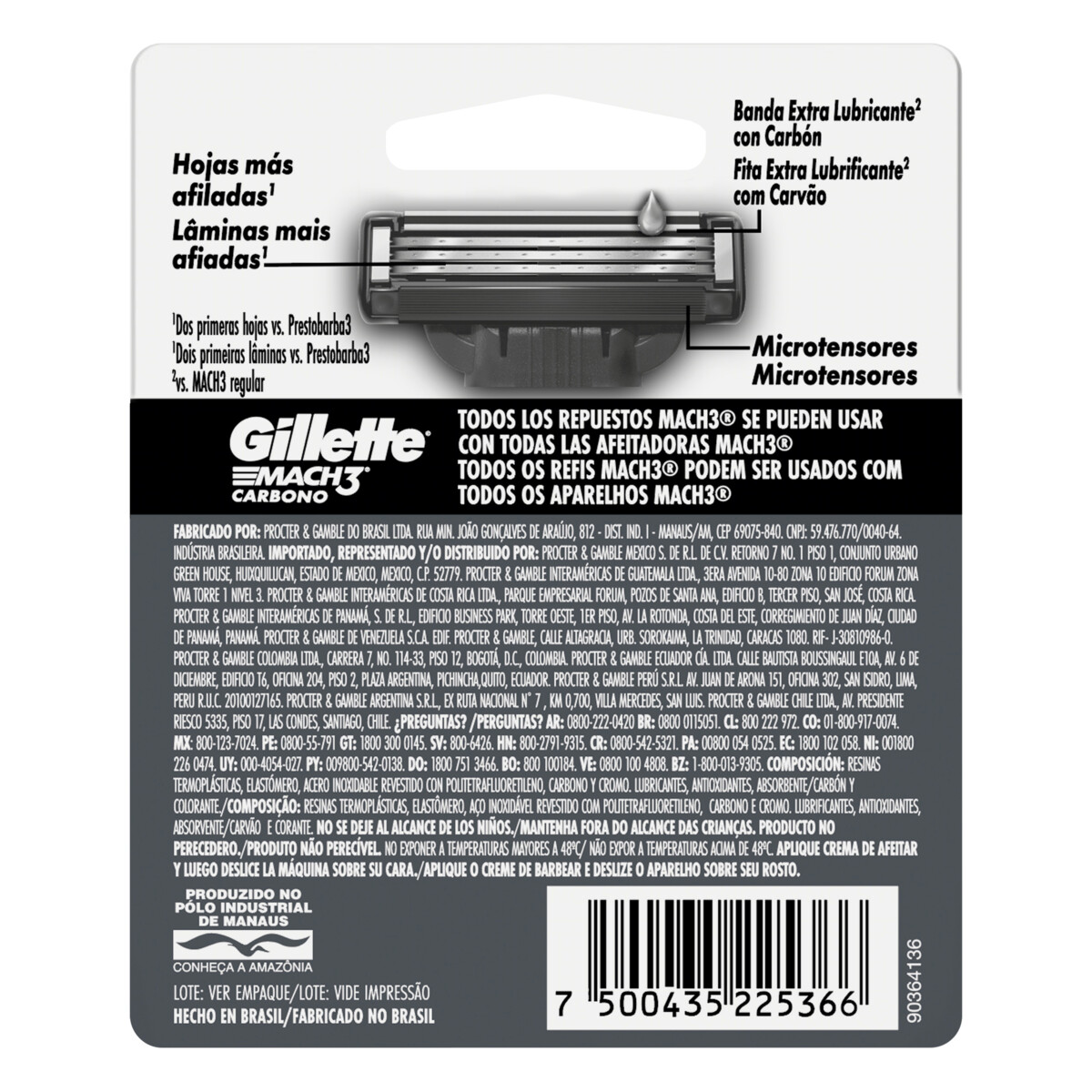 Carga de Barbear Mach3 2un Carbono